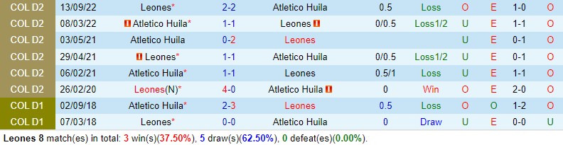 Leones đang sa sút không phanh khi thua 3 trận liên tục đồng thời ko biết đến chiến thắng trong 5 vòng đấu gần đây. Trong khi đó, Atletico Huila thắng cả ba trận mới đây ở (những) giải quốc nội. bốn trong 5 chuyến làm khách mới nhất, thầy trò Corredor cũng ca khúc khải hoàn.