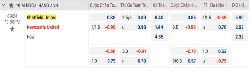 Soi kèo trận đấu giữa đội tuyển Sheff Utd vs Newcastle