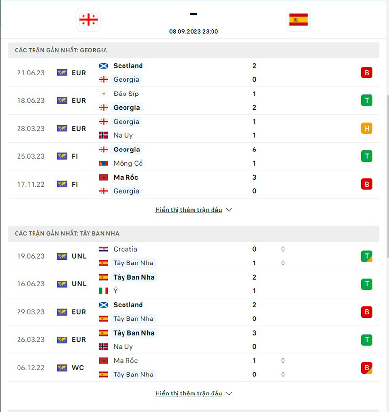 Phong độ thi đấu của đội tuyển Georgia vs Tây Ban Nha