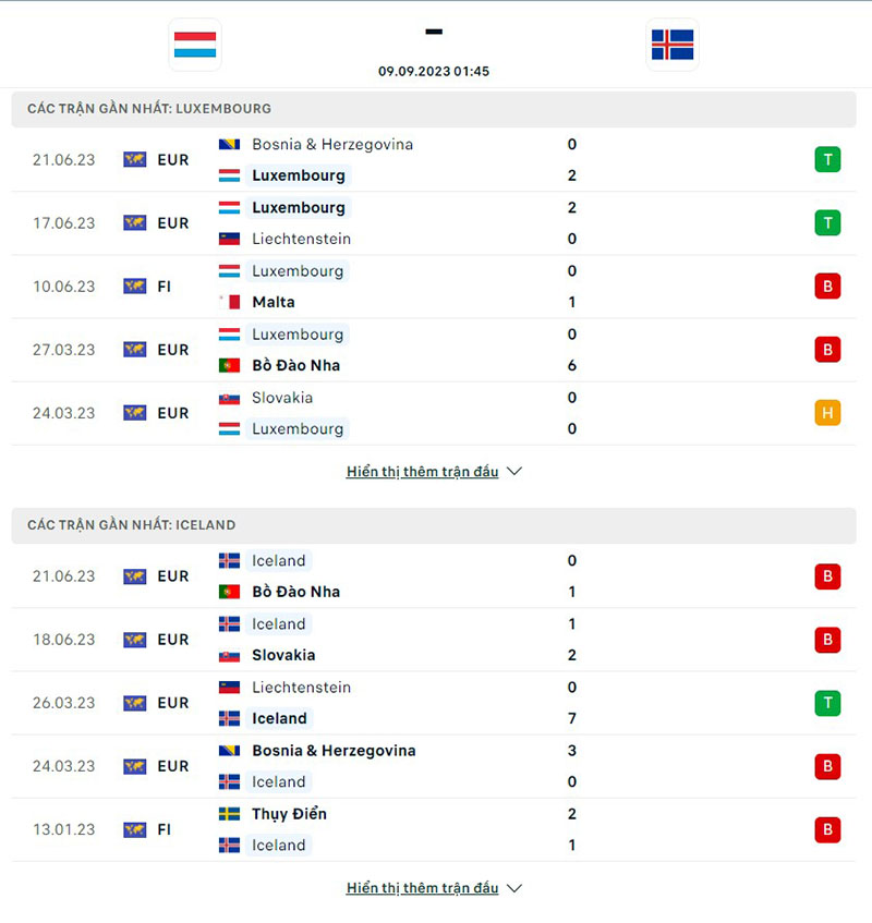 Phong độ thi đấu của đội tuyển Luxembourg vs Iceland