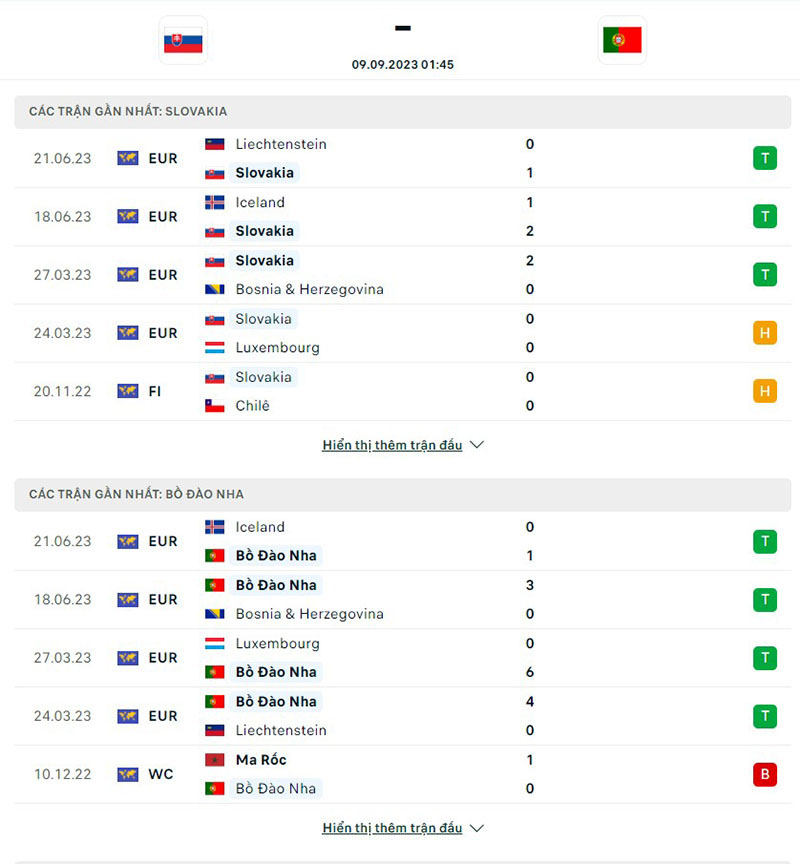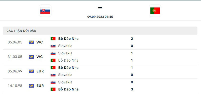 Phong độ thi đấu của đội tuyển Slovakia vs Bồ Đào Nha