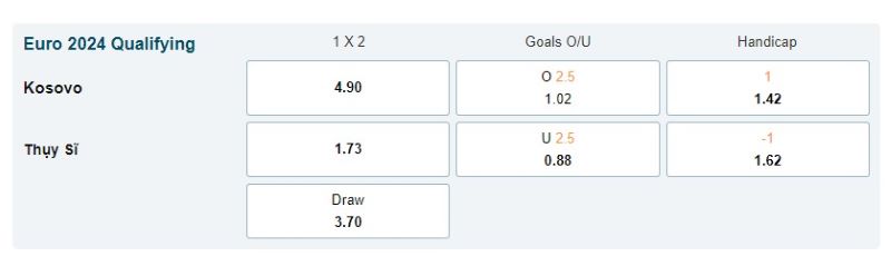 Kèo tài xỉu trận đấu Kosovo vs Thụy Sĩ 2.5 trái fulltime