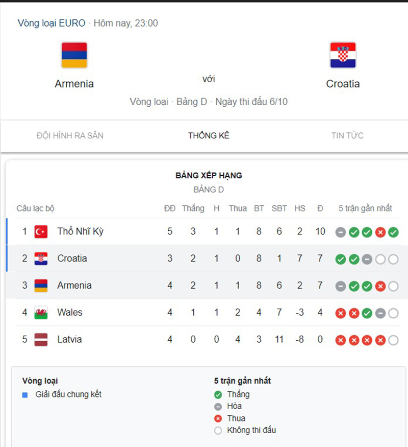 Cuộc cạnh tranh tấm vé vào VCK Euro 2024 giữa Armenia vs Croatia tại bảng D đang diễn ra vô cùng căng thẳng. Vậy nên cuộc đối đầu giữa hai đội bóng nhận được sự quan tâm rất lớn từ giới chuyên môn.