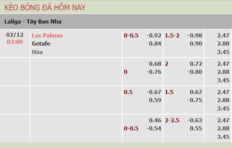 - Kèo châu Á Las Palmas chấp 0-0.5 trái fulltime => Chọn Getafe.