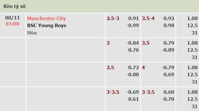Soi kèo trận đấu giữa đội tuyển Man City vs Young Boys