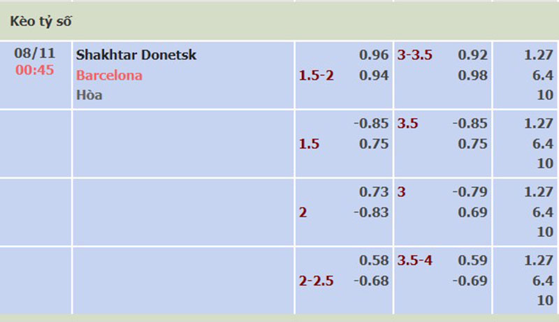 Soi kèo trận đấu giữa đội tuyển Shakhtar vs Barcelona