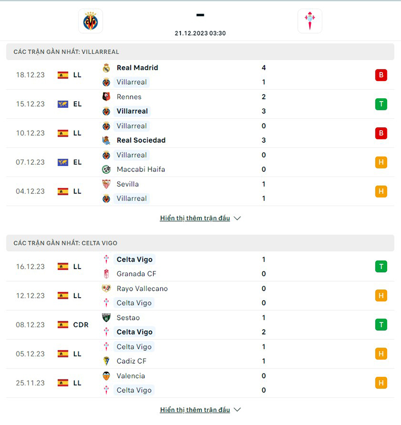 Trên toàn bộ 5 trận gần nhất, đội bóng chỉ giành được 1 chiến thắng, còn lại là 2 thất bại và 2 trận hòa. Tình hình này đặt ra thách thức lớn cho Villarreal khi họ cố gắng đạt được mục tiêu 3 điểm trong trận đấu sắp tới với Celta Vigo.