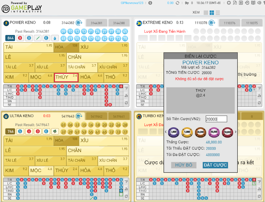 Bước 3: Đặt cược tại xổ số Keno 888b